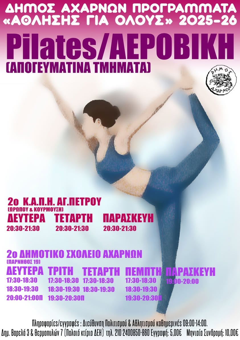 Ξεκινούν τα προγράμματα μαζικού αθλητισμού, τα οποία υλοποιούνται από τη Διεύθυνση Πολιτισμού και Αθλητισμού του Δήμου Αχαρνών, σε συνεργασία με τη Γενική Γραμματεία Αθλητισμού.