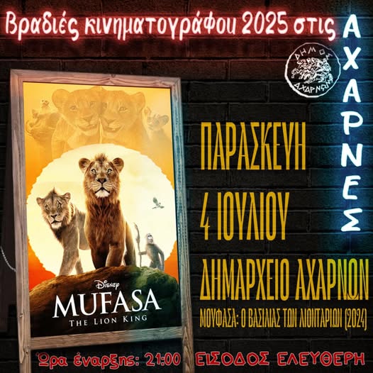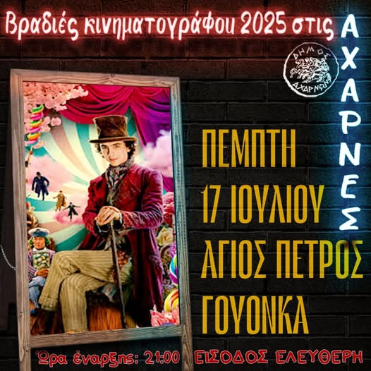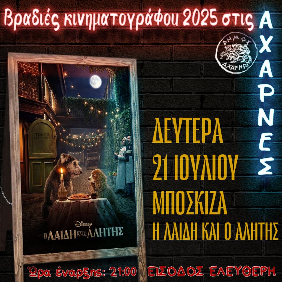 Ανοίγει σήμερα, στις 21:00, στην πλατεία του Δημαρχείου Αχαρνών η αυλαία των βραδιών κινηματογράφου 2025.