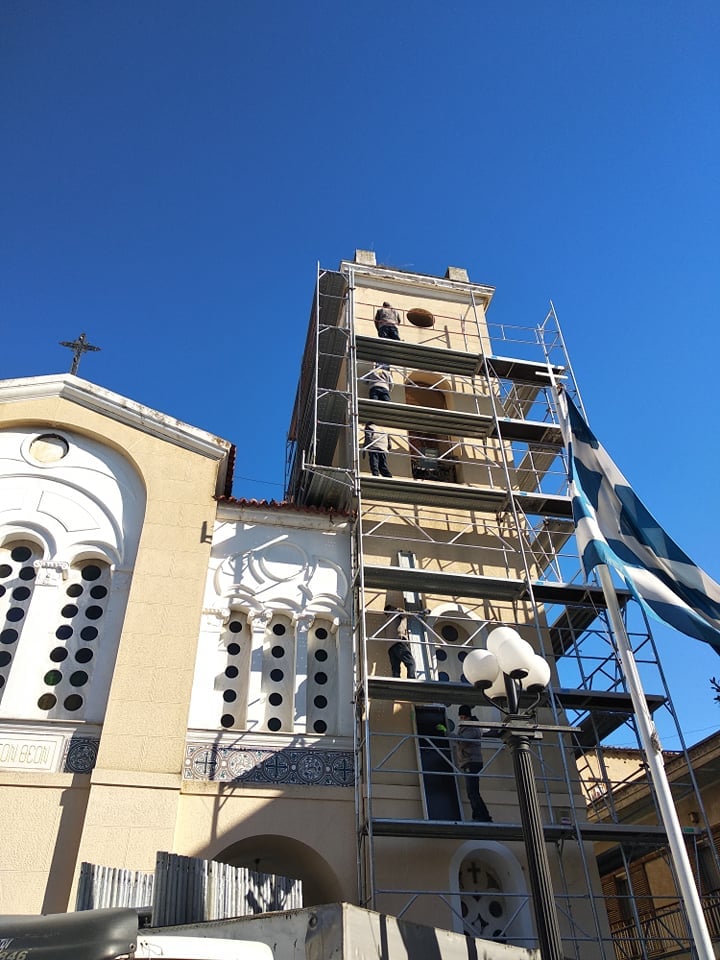 Σε εξέλιξη βρίσκονται οι εργασίες επισκευής και συντήρησης στο καμπαναριό, τους τοίχους και το εξωτερικό πάνω μέρος του Ιερού Ναού Αγίου Βλασίου,