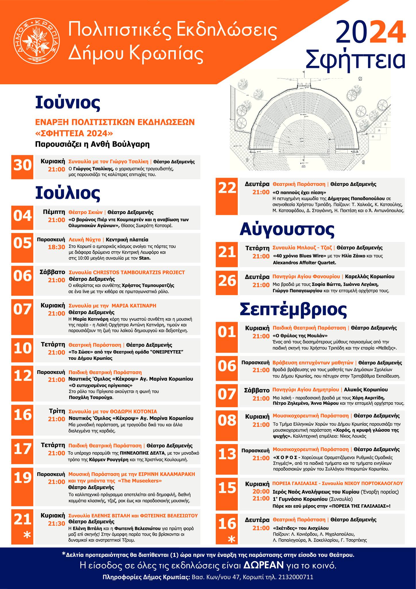 "Σφήττεια 2024" Δήμος Κρωπίας : Μια ξεχωριστή διοργάνωση, με αγάπη για την Οικογένεια και τις αξίες που τη συνοδεύουν στη ζωή μας, με κοινωνική ευαισθησία και αλληλεγγύη, με επιλογή εξαιρετικών καλλιτεχνών, προϊόν συλλογικής εθελοντικής εργασίας και επιμέλειας, αιρετών, δημοτικών υπαλλήλων και εθελοντών. Στις 30 Ιουνίου 2024 η έναρξη.