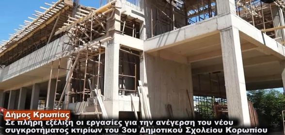 Με εντατικούς ρυθμούς συνεχίζεται η ανέγερση του νέου συγκροτήματος κτιρίων που βρίσκεται στο χώρο του 3ου Δημοτικού Σχολείου Κορωπίου,