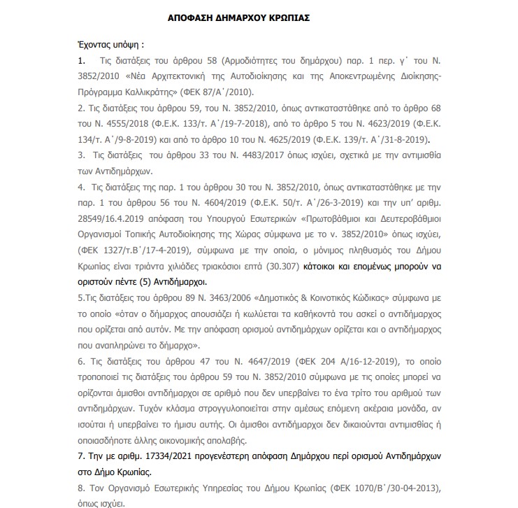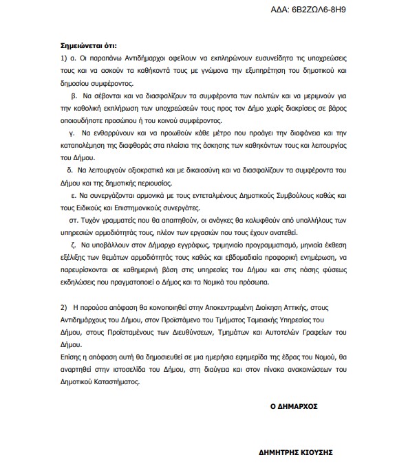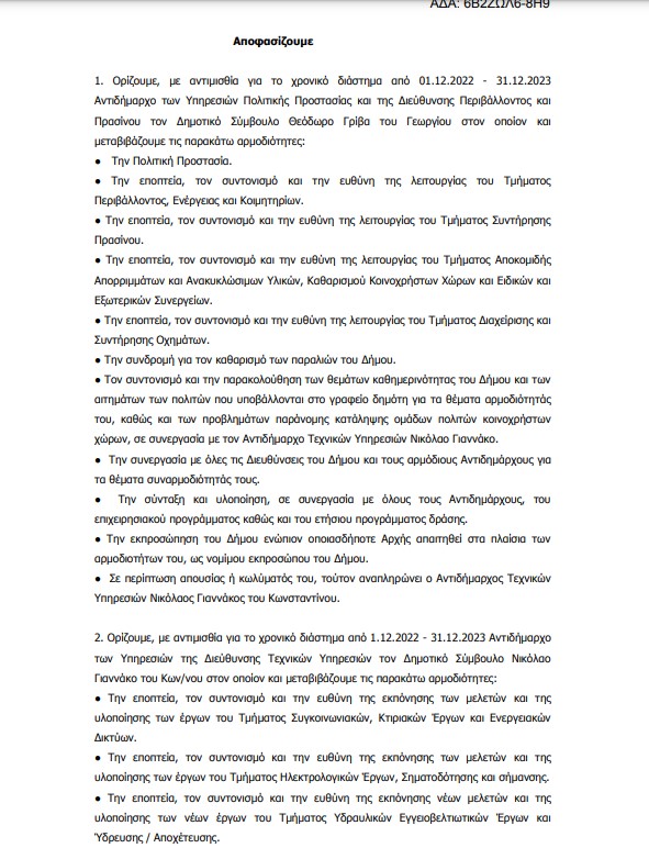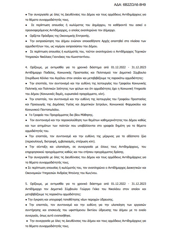 Σύμφωνα με τις διατάξεις του άρθρου 67 του ν.3852/2010, όπως αυτό αντικαταστάθηκε από το άρθρο 74 του ν.4555/2018 και τροποποιήθηκε από τα άρθρα 177 και 184 του ν.4635/2019, και την με αριθμό ΔΙΔΑΔ/Φ.69/208/οικ/10284/24-06-2022 (ΑΔΑ:9ΖΣΙ46ΜΤΛ6-710) εγκύκλιο του Υπουργείου Εσωτερικών σας καλούμε να προσέλθετε στο αμφιθέατρο του Δημαρχείου (Βασ. Κων/νου 47) , την 22η Νοεμβρίου 2022 ημέρα Τρίτη και ώρα 19:30 όπου θα πραγματοποιηθεί η «Δια ζώσης» 25η τακτική συνεδρίαση του Δημοτικού Συμβουλίου με τα παρακάτω θέματα της ημερήσιας διάταξης: