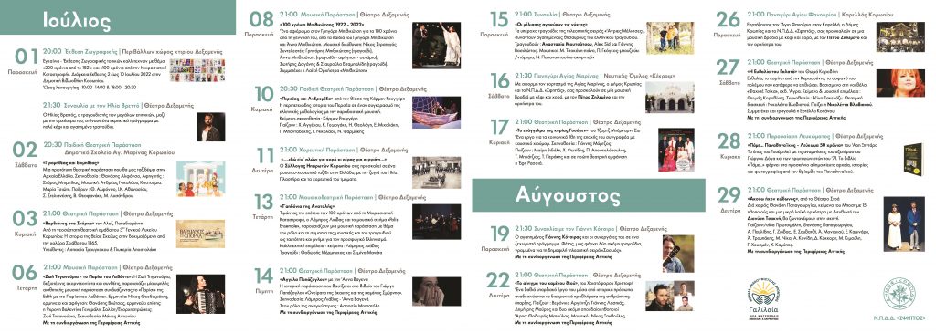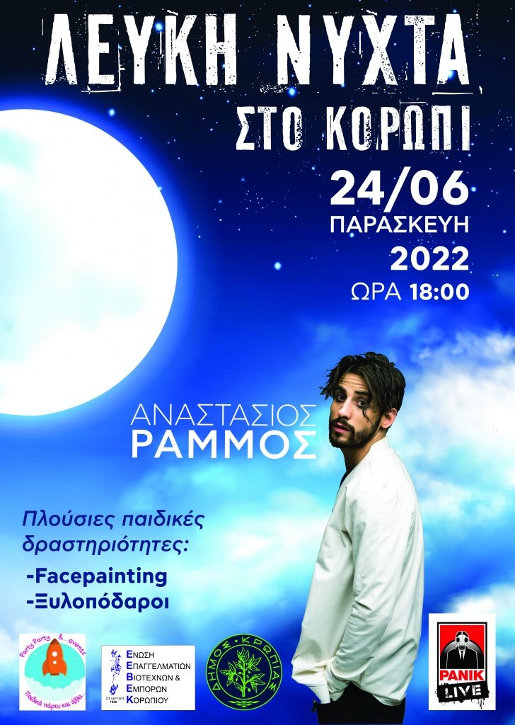 22:00 : Κεντρική Πλατεία Κορωπίου: Λαϊκή συναυλία με τον Αλέκο Ζαζόπουλο,  την Βάσια Θεοδοσίου και την ορχήστρα τους.