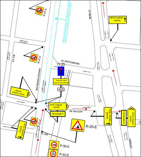 Την Πέμπτη 24 Σεπτεμβρίου 2020 ξεκινάει η 2η φάση των εργασιών. Για την πραγματοποίηση των εργασιών θα γίνει πλήρης διακοπή της κυκλοφορίας της Λ. Βασ. Κων/νου, από το ύψος της συμβολής της με την οδό Γεωργίου Βασιλείου έως το ύψος της συμβολής της με την οδό Βασιλ. Λέκκα-Χατζή, στο ρεύμα κυκλοφορίας προς Παιανία. Κατά την ανωτέρω διακοπή η κυκλοφορία των οχημάτων θα διεξάγεται ως εξής: – Λ. Βασ. Κων/νου – δεξιά Χρ. Παύλου – αριστερά Αττικής – αριστερά Δημοκρατίας( σ.σ «τμήμα της οδού Αττικής η λεγόμενη στροφή»)- δεξιά Βασ. Κων/νου/Λ. Λαυρίου (Επισυνάπτεται ο επίσημος χάρτης των κυκλοφοριακών ρυθμίσεων).