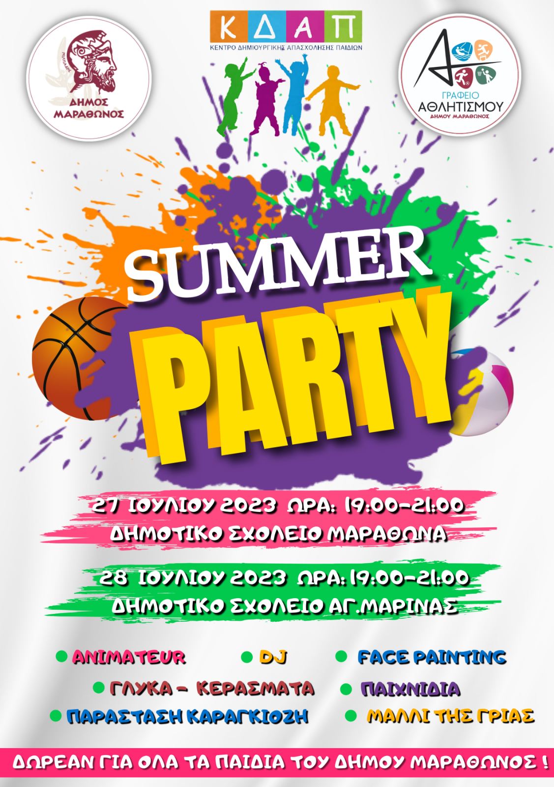 Την Πέμπτη 27/7 και την Παρασκευή 28/7 τα καλοκαιρινά πάρτυ των ΚΔΑΠ του Δήμου Μαραθώνος.