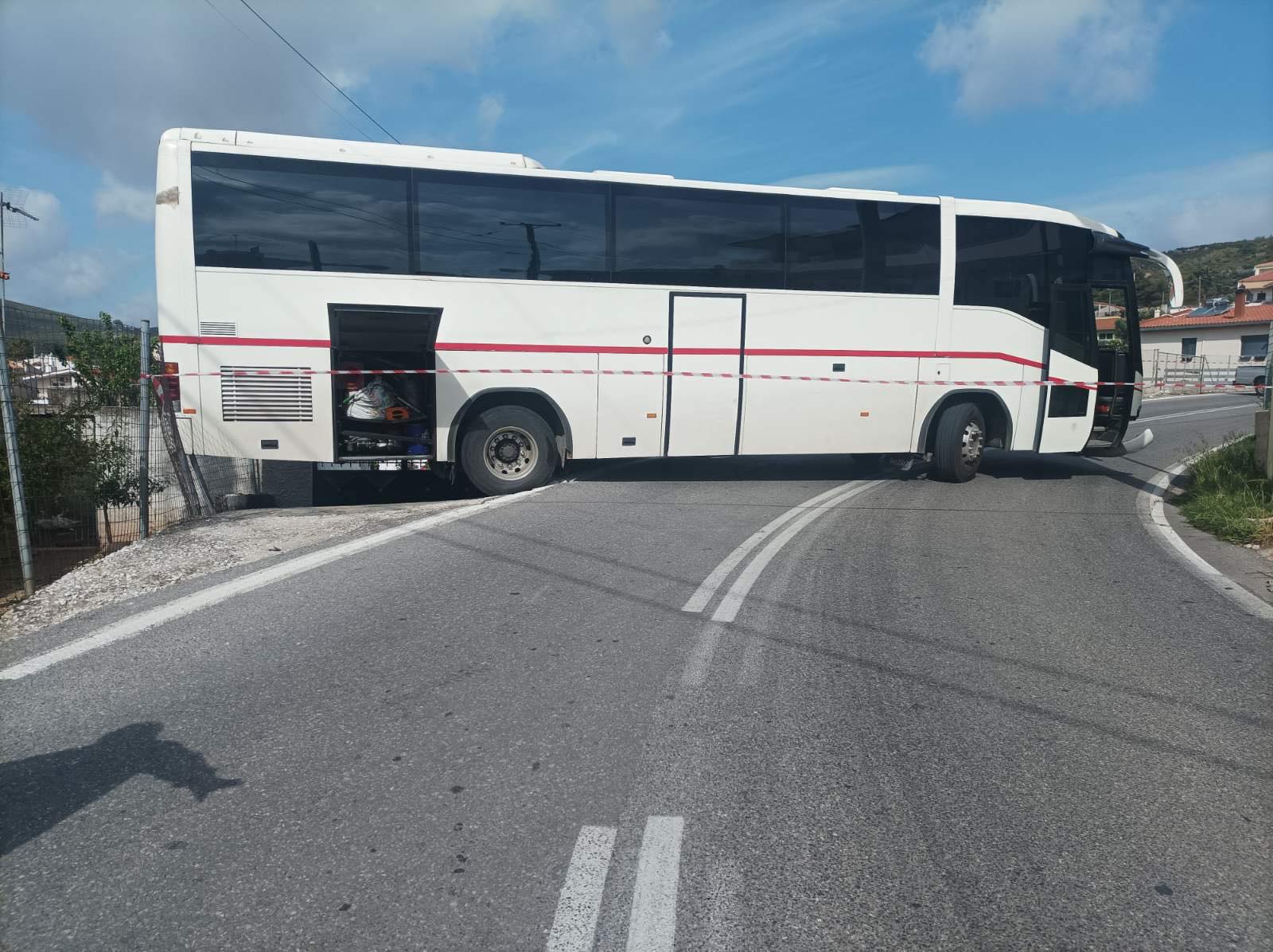 Το πούλμαν κινούταν στην Αγίου Γεωργίου στο Γραμματικό, όταν ο οδηγός προσπάθησε να κάνει αναστροφή και τότε βγήκε εκτός οδοστρώματος και κατέληξε στην αυλή σπιτιού.