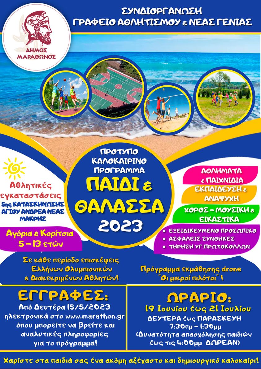 Ημερήσιο Εκπαιδευτικό-Αθλητικό & Ψυχαγωγικό CAMP «Παιδί & Θάλασσα 2023»: Από την Δευτέρα 15 Μαΐου ξεκινούν οι αιτήσεις εγγραφών για παιδιά 5-13 ετών.