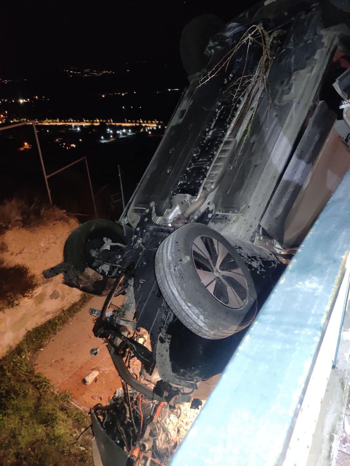 Το συγκεκριμένο αυτοκίνητο για άγνωστη αιτία ξέφυγε της πορείας του,πέφτοντας από μια πλαγιά καταλήγοντας στο μπαλκόνι μιας οικίας.