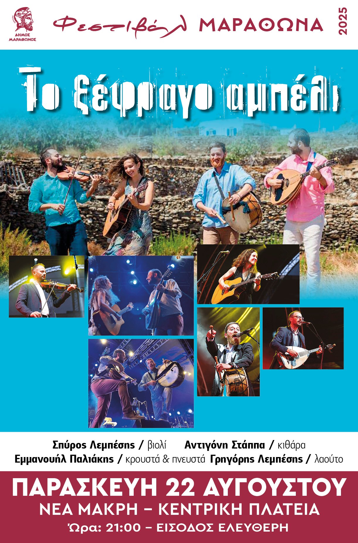 Αυτή την Παρασκευή 22 Αυγούστου 2025 (9μμ), η πλατεία Νέας Μάκρης γεμίζει μελωδίες από το "ξέφραγο αμπέλι".