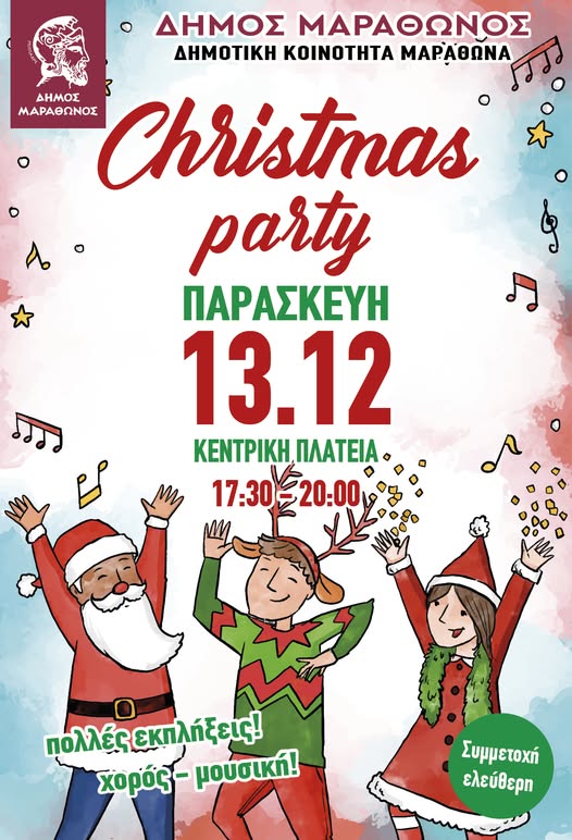 Σήμερα Παρασκευή 13 Δεκεμβρίου 2024 (5.30μμ), η πρώτη μας Χριστουγεννιάτικη Γιορτή στην κεντρική πλατεία Μαραθώνα.