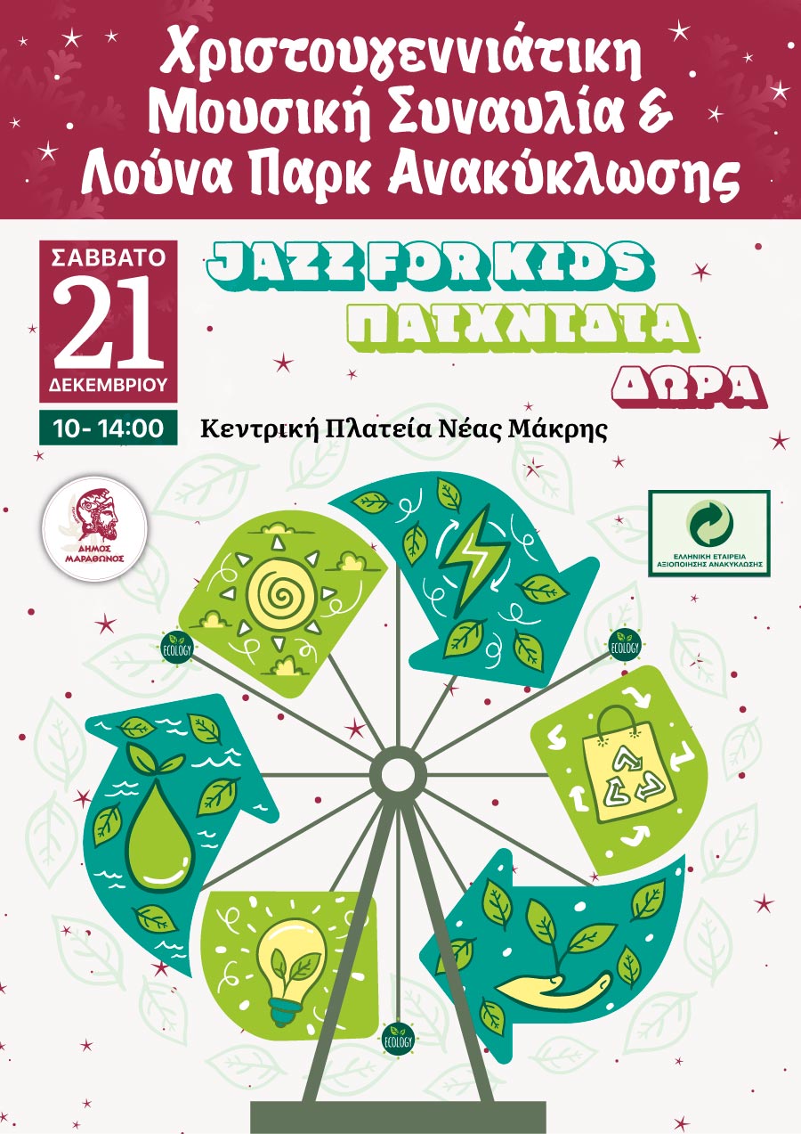 Λούνα Παρκ Ανακύκλωσης και παιδική συναυλία Jazz από τον Δήμο Μαραθώνος και την Ελληνική Εταιρεία Αξιοποίησης Ανακύκλωσης Α.Ε. (ΕΕΑΑ) - Σάββατο 21/12/2024, 10:00.