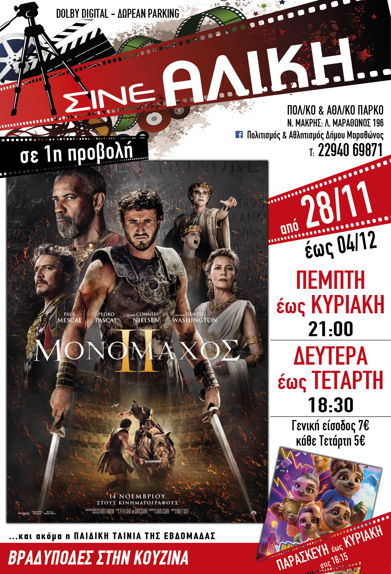 Από σήμερα Πέμπτη 28 Νοεμβρίου 2024 για τους ενήλικους & από αύριο Παρασκευή 29 Νοεμβρίου 2024 για τους μικρούς μας φίλους, ταινίες 1ης προβολής στο ΣΙΝΕ ΑΛΙΚΗ στο Πολιτιστικό & Αθλητικό Πάρκο Νέας Μάκρης.