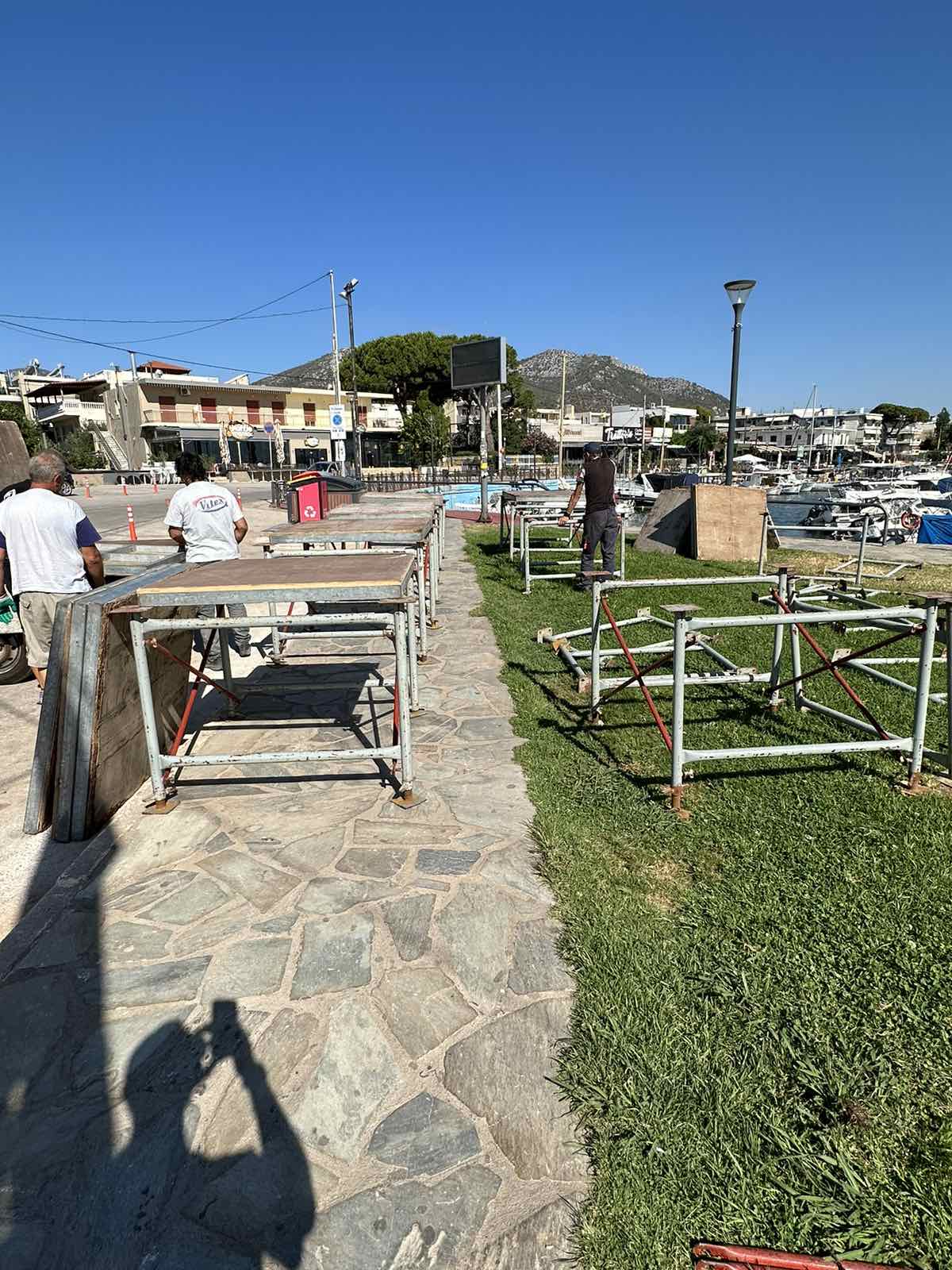 Ετοιμασίες για την αποψινή (Τετάρτη 17 Ιουλίου 2024) μουσική βραδιά στην κεντρική πλατεία του Μαραθώνα.