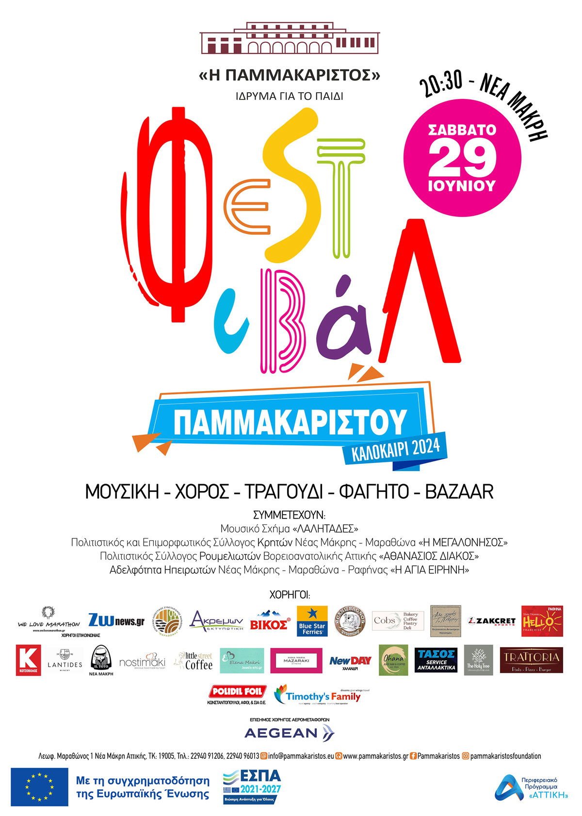 Το Σάββατο, 29 Ιουνίου και ώρα 20:30 το καλοκαιρινό φεστιβάλ της Παμμακαρίστου, στις εγκαταστάσεις του Ιδρύματος!