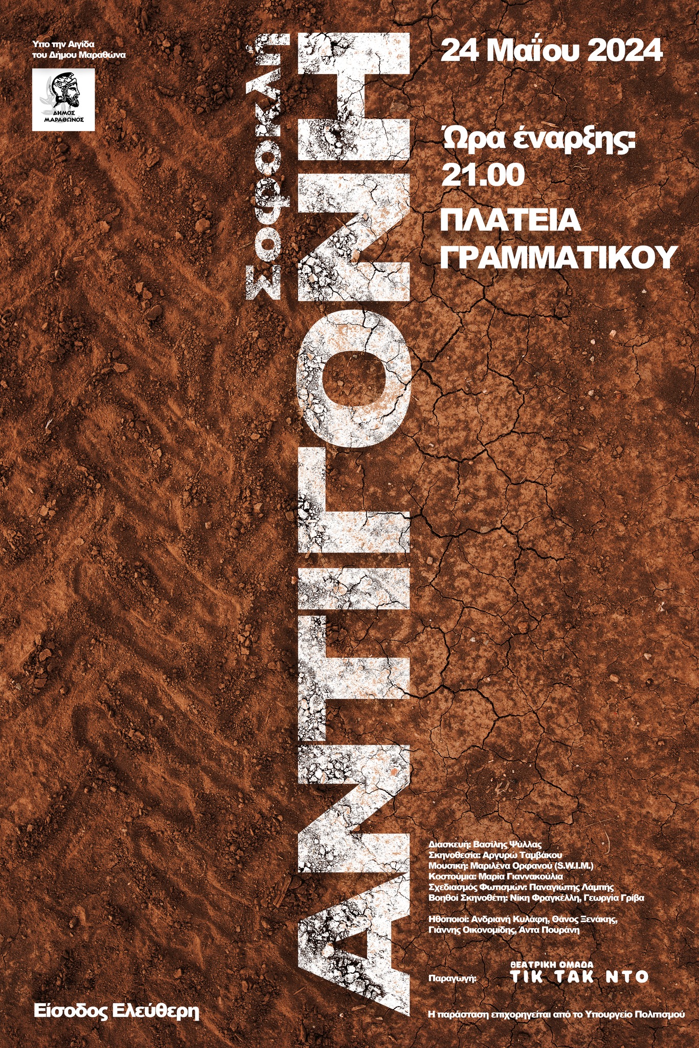 Σοφοκλή Αντιγόνη (από τον Βαρνάβα μέχρι τον Νέο Βουτζά) με ελεύθερη είσοδο για όλους. Θεατρική ομάδα: ΤΙΚ ΤΑΚ ΝΤΟ