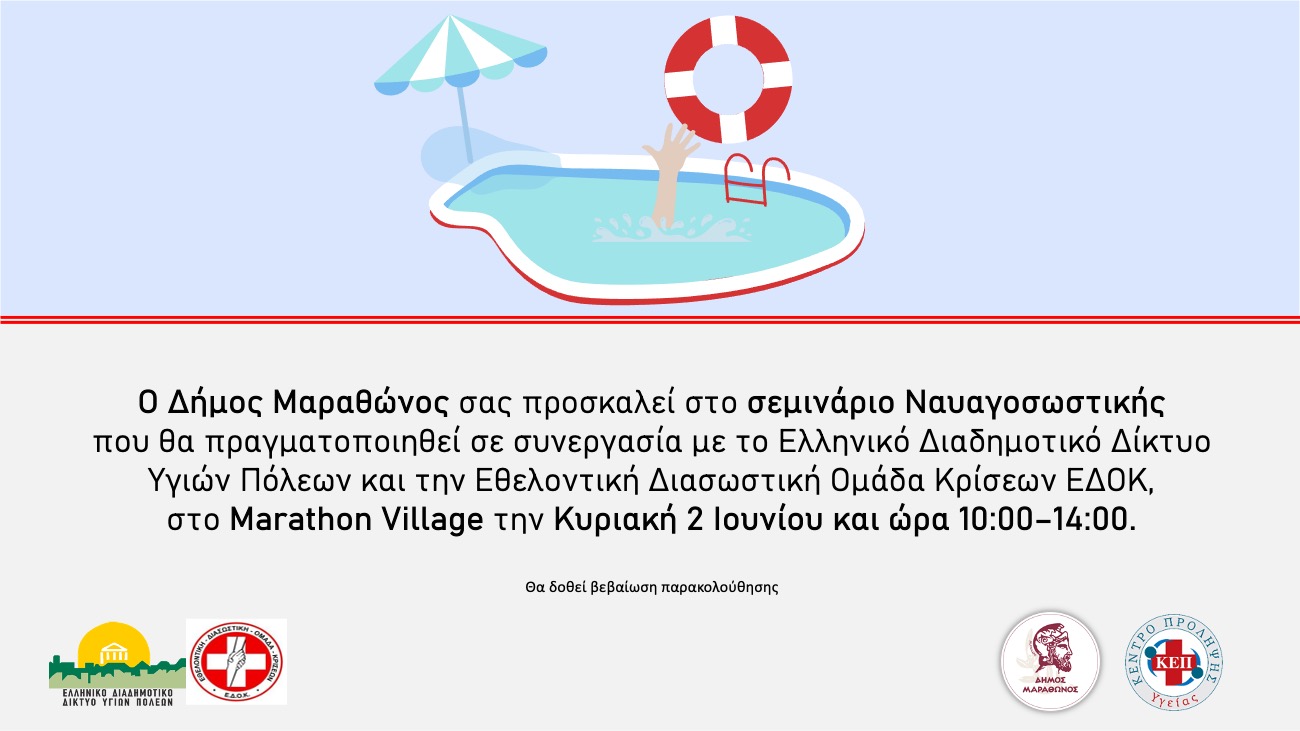 Δωρεάν σεμινάριο «Γνωριμία με τη Ναυαγοσωστική», την Κυριακή 2/6, ώρες 10:00-14:00, στο Δήμο Μαραθώνος.