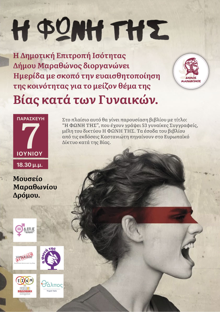 “Η φωνή της”: Μια εκδήλωση για τη βία κατά των γυναικών -Παρασκευή, 7/6, στο Μουσείο Μαραθωνίου Δρόμου.