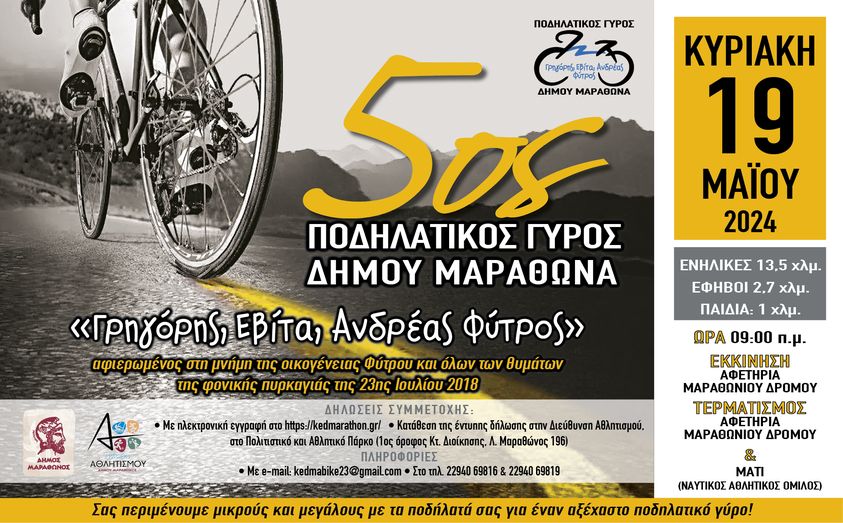 Ξεκίνησαν οι εγγραφές του 5ου ποδηλατικού γύρου Μαραθώνα "Γρηγόρης Εβίτα Ανδρέας Φύτρος".