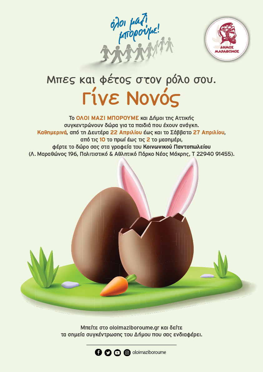 “Όλοι μαζί μπορούμε”: Έως και το Σάββατο 27/4 η προσφορά δώρων για τα παιδιά του Δήμου μας που έχουν ανάγκη.