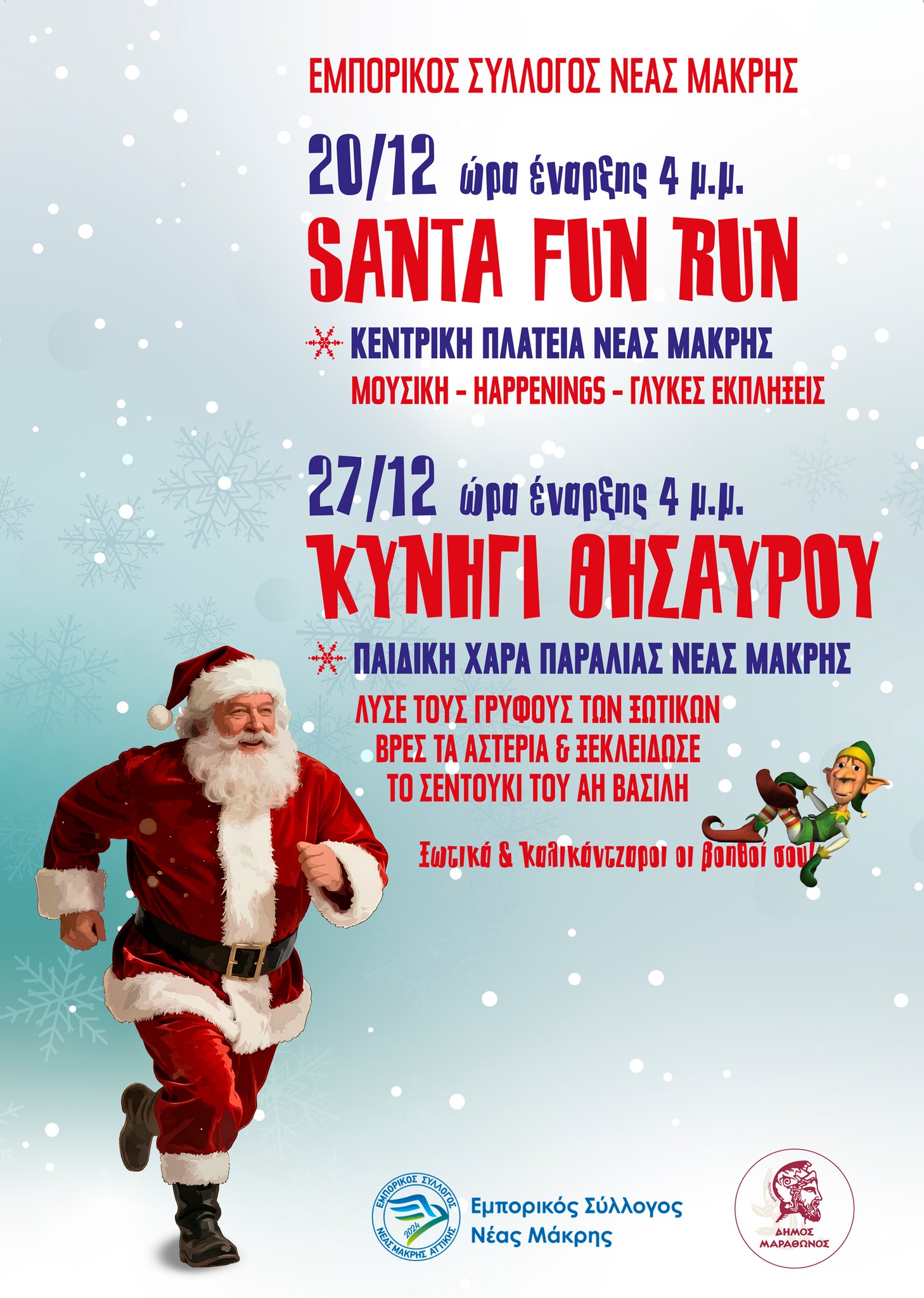 Παρασκευή 19, Σάββατο 20 & Κυριακή 21 Δεκεμβρίου 2025 σε Γραμματικό, Νέα Μάκρη & Μαραθώνα.