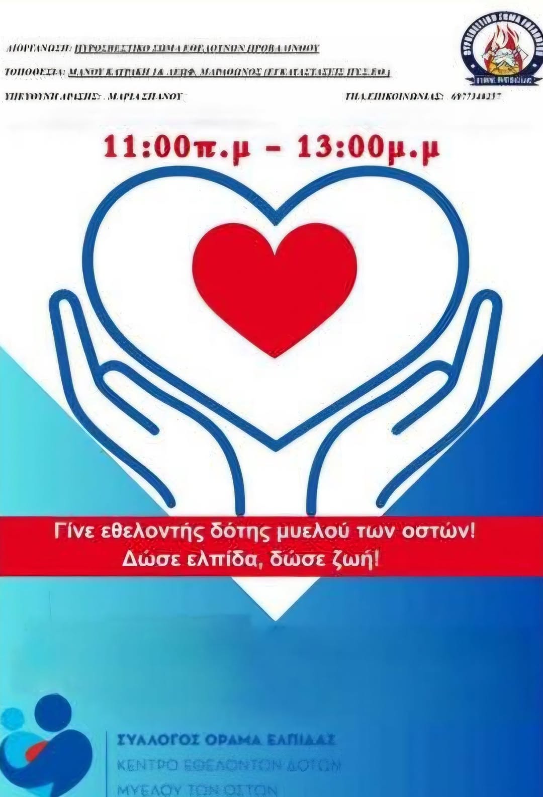 Δράση Ευαισθητοποίησης και Εγγραφής Εθελοντών Δοτών Μυελού των Οστών.