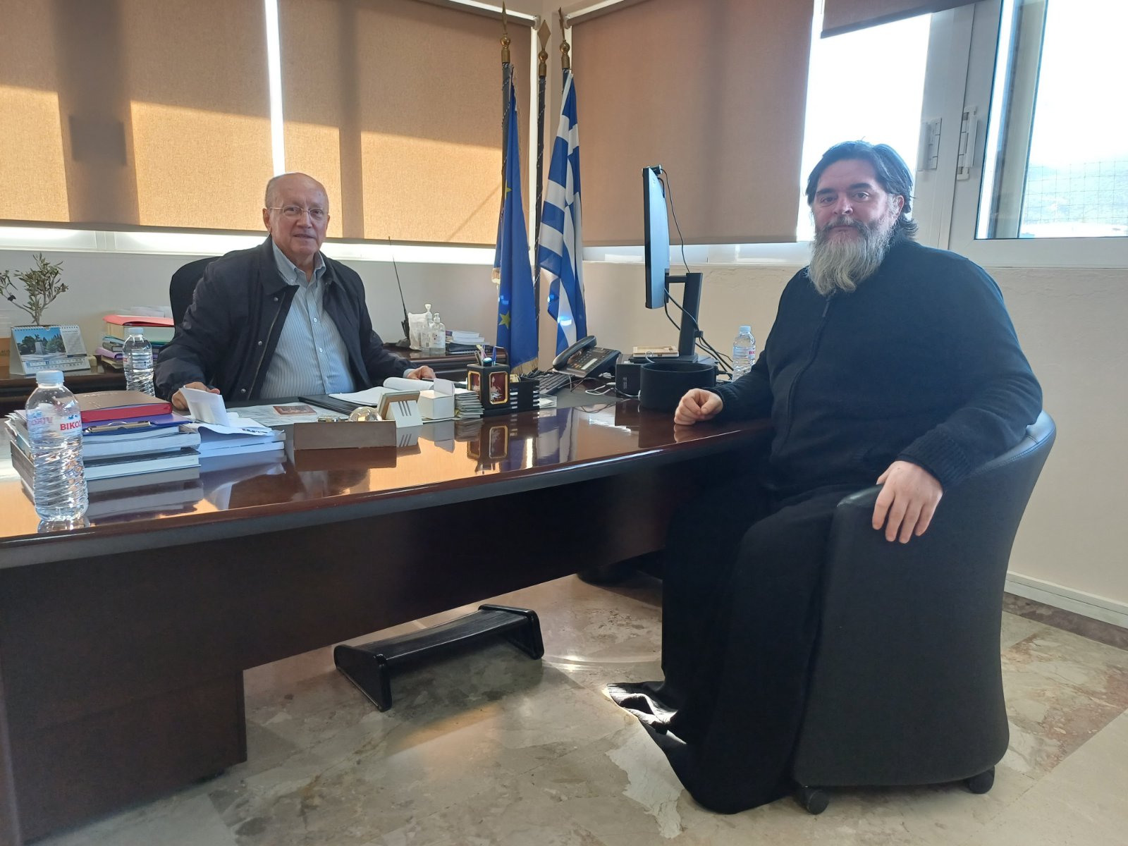 Εθιμοτυπική επίσκεψη γνωριμίας του πατέρα Βησσαρίωνα Παππά στον Δήμαρχο Μαραθώνος Στέργιο Τσίρκα.