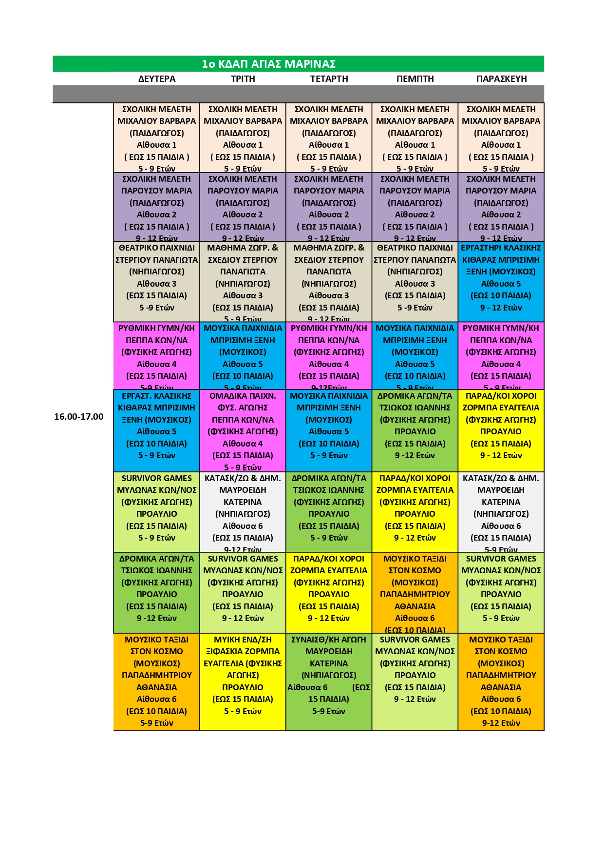 Πρόγραμμα δραστηριοτήτων ΚΔΑΠ Δήμου Μαραθώνος.