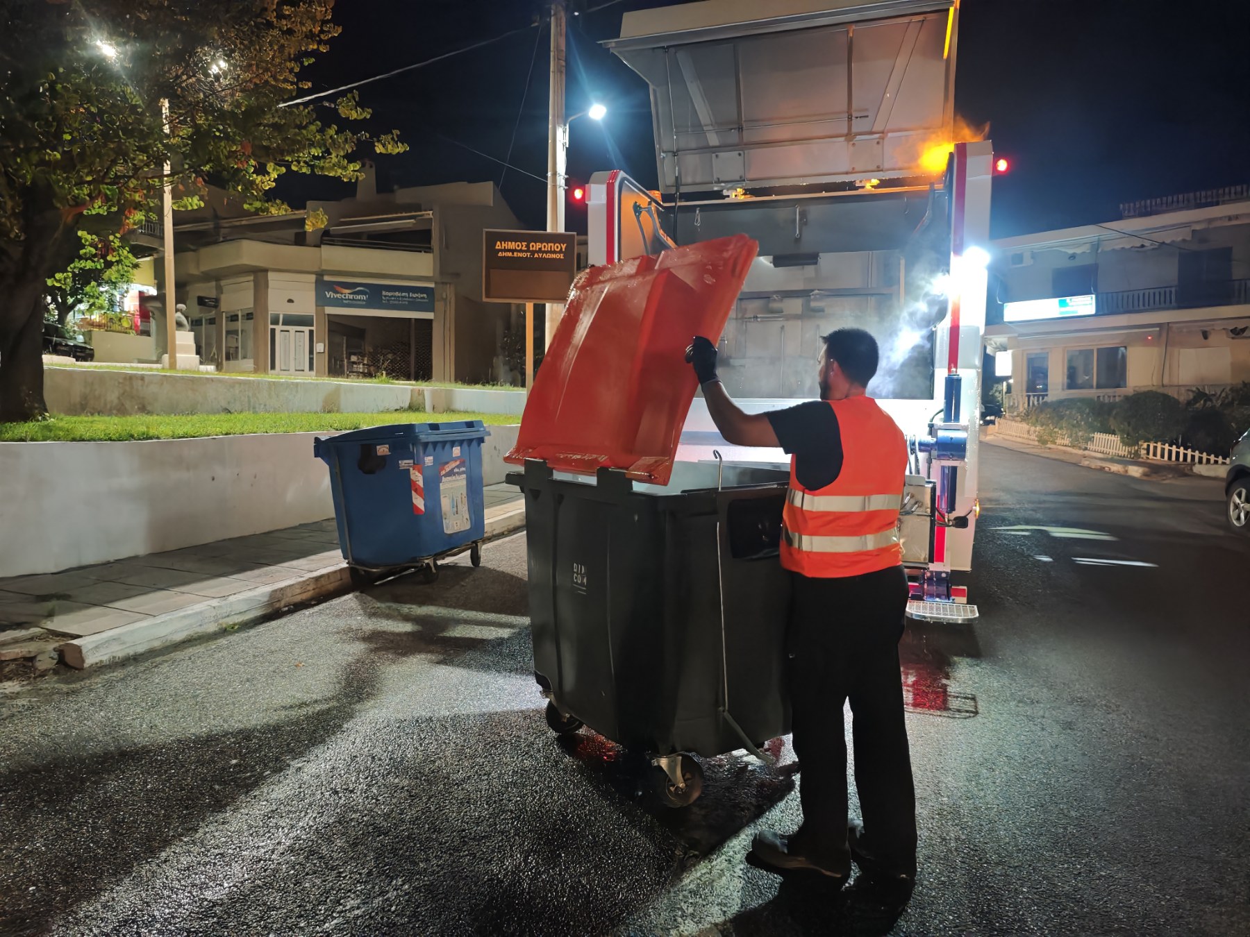 Ο Δήμαρχος Ωρωπού Γιώργος Γιασημάκης βρέθηκε στον Αυλώνα και παρακολούθησε τη σημαντική διαδικασία πλύσης των κάδων των οικιακών απορριμμάτων.