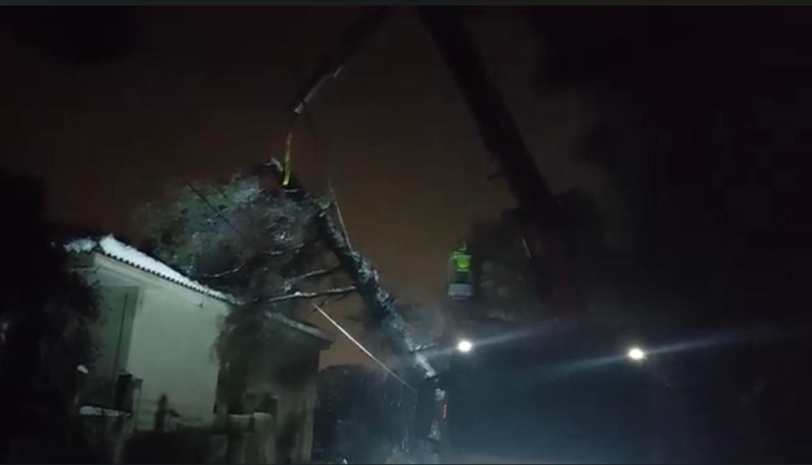 Περιοχή Λυκοψοφι Μαλακάσας. Τεράστια επιχείρηση του ΔΕΔΔΗΕ και ειδικά των συνεργείων του πρακτορείου ΔΕΔΔΗΕ Ωρωπού με την υποστήριξη της Κοινότητας Μαλακάσας του Δήμου Ωρωπού που έκαναν διάνοιξη των δρόμων και υποστηριξη για την κοπή τεράστιου πεύκου που έπεσε πάνω σε σπίτι παρασέρνοντας καλώδια δικτύου χαμηλής τάσης.