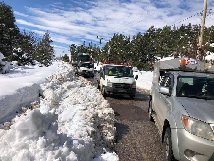 ?(01:55 ήχος): Τα μηχανήματα όλα αυτά είναι για τους δρόμους. Τρία από αυτά ανοίγουν δρόμο στα συνεργεία της ΔΕΔΔΗΕ. Οι βλάβες είναι πολλές και μεγάλες. Δεν παλεύεται να είσαι εγκλωβισμένος στο σπίτι χωρίς νερό και χωρίς ρεύμα. Δεν αντέχεται. Έκτός από την Ιπποκράτειο και τις Αφίδνες, έχουμε προβλήματα και στο Μετόχι Ρη και στο Μικροχώρι. Επιχειρούν και εκεί 7 οχήματα του Δήμου μας μαζί με τον ΔΕΔΔΗΕ».