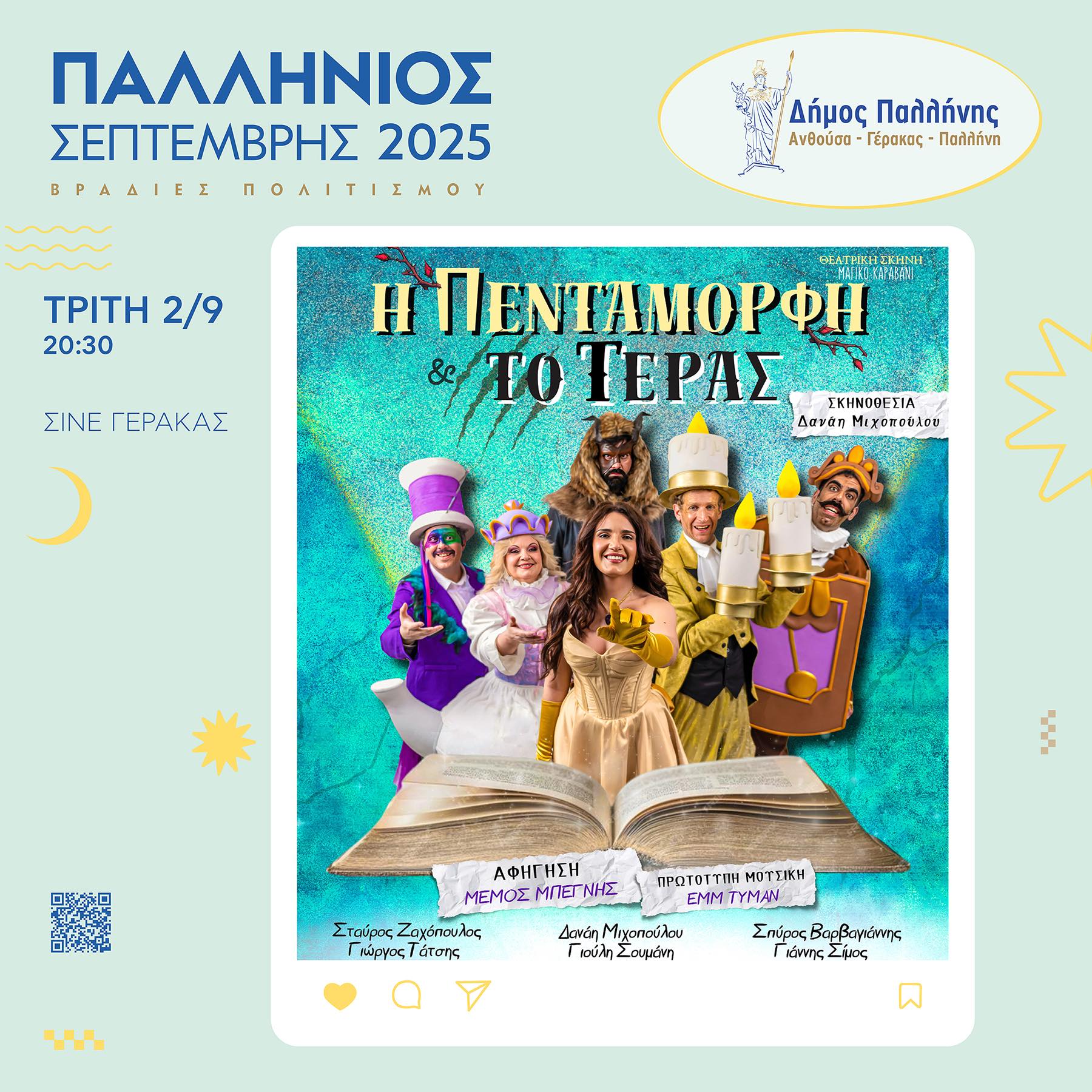 Παλλήνιος Σεπτέμβρης 2025: Η μαγική παιδική παράσταση «Η Πεντάμορφη και το Τέρας» στο Σινέ Γέρακας – Τρίτη 02/09/25, 20:30
