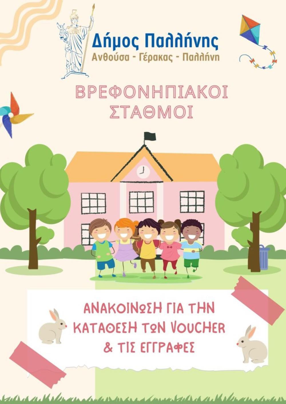 Εγγραφές βρεφών/νηπίων στους βρεφονηπιακούς σταθμούς του Δήμου Παλλήνης για το σχολικό έτος 2025-2026. Κατάθεση δικαιολογητικών για το πρόγραμμα «Προώθηση και υποστήριξη παιδιών για την ένταξή τους στην προσχολική εκπαίδευση καθώς και για τη πρόσβασή παιδιών προσχολικής ηλικίας, εφήβων και ατόμων με αναπηρία, σε υπηρεσίες δημιουργικής απασχόλησης» της χρονικής περιόδου 2025-2026