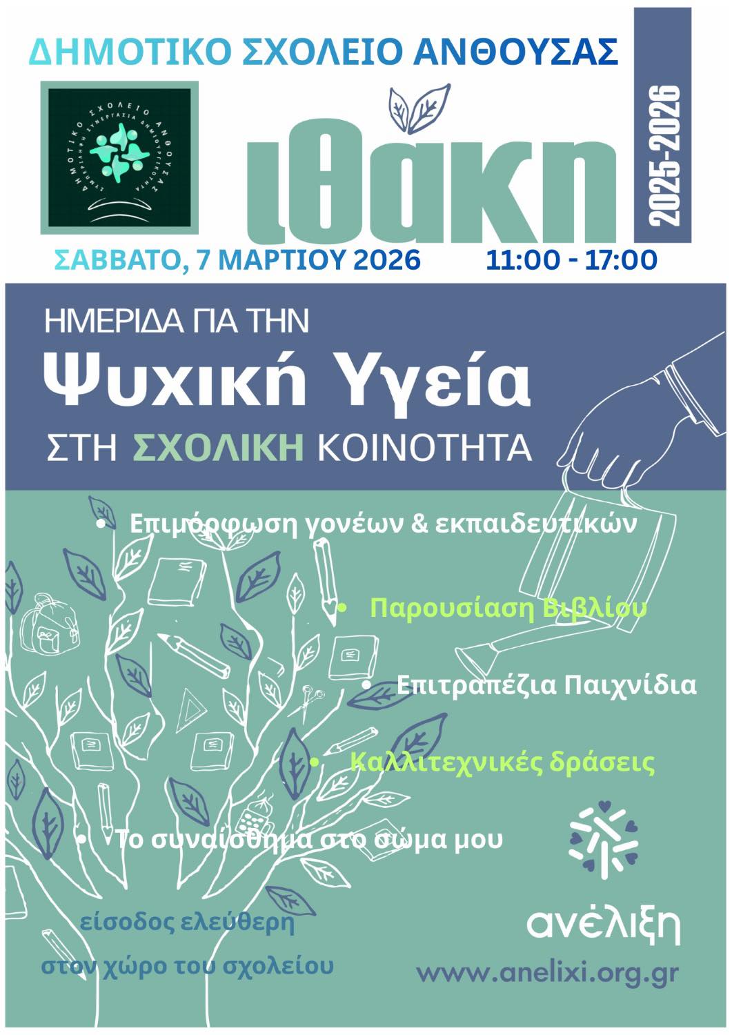 07.03.2026: Ημερίδα για την ενδυνάμωση της ψυχικής ανθεκτικότητας παιδιών και γονέων στο Δημοτικό Σχολείο Ανθούσας