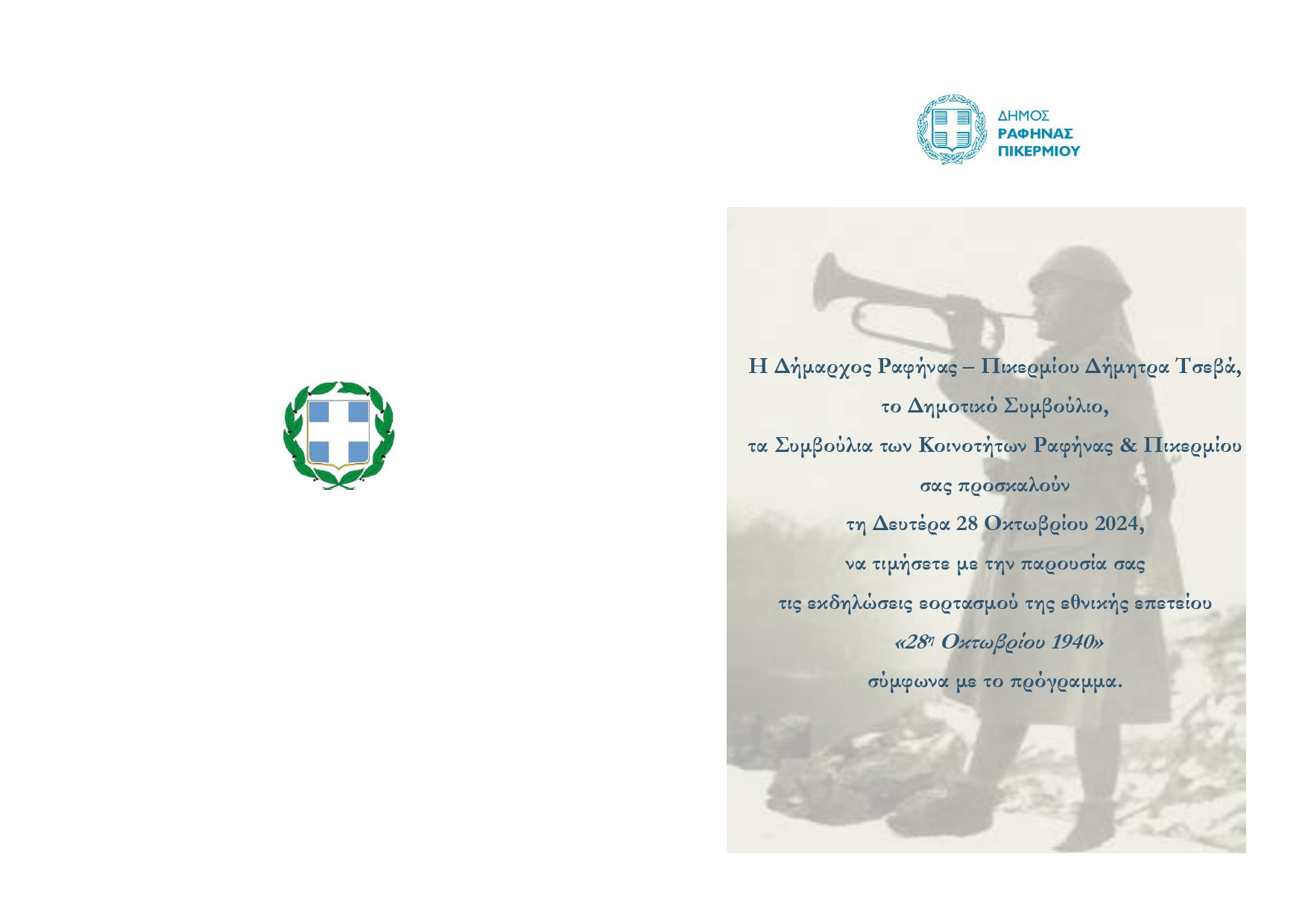 Πρόγραμμα Εορτασμού Εθνικής Επετείου 28ης Οκτωβρίου στον Δήμο Ραφήνας - Πικερμίου