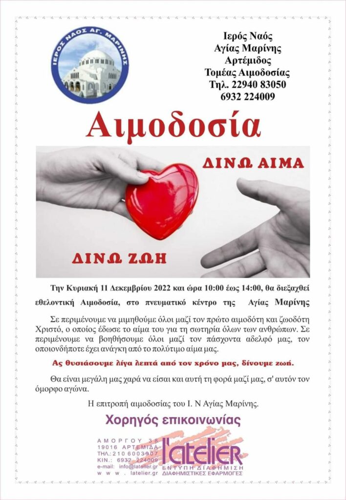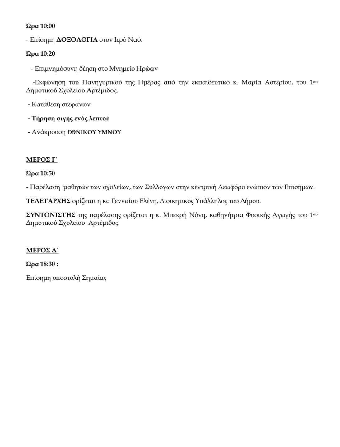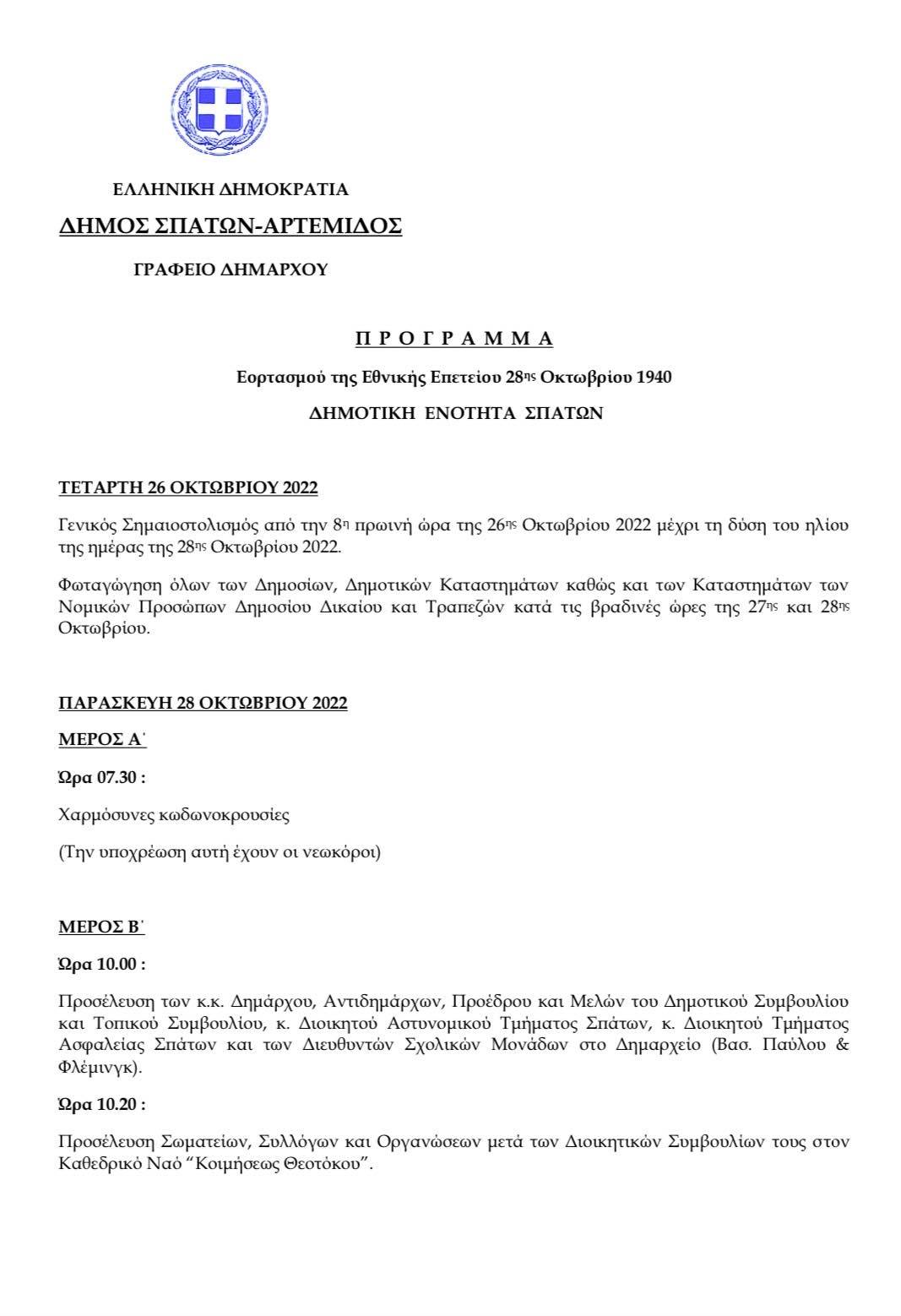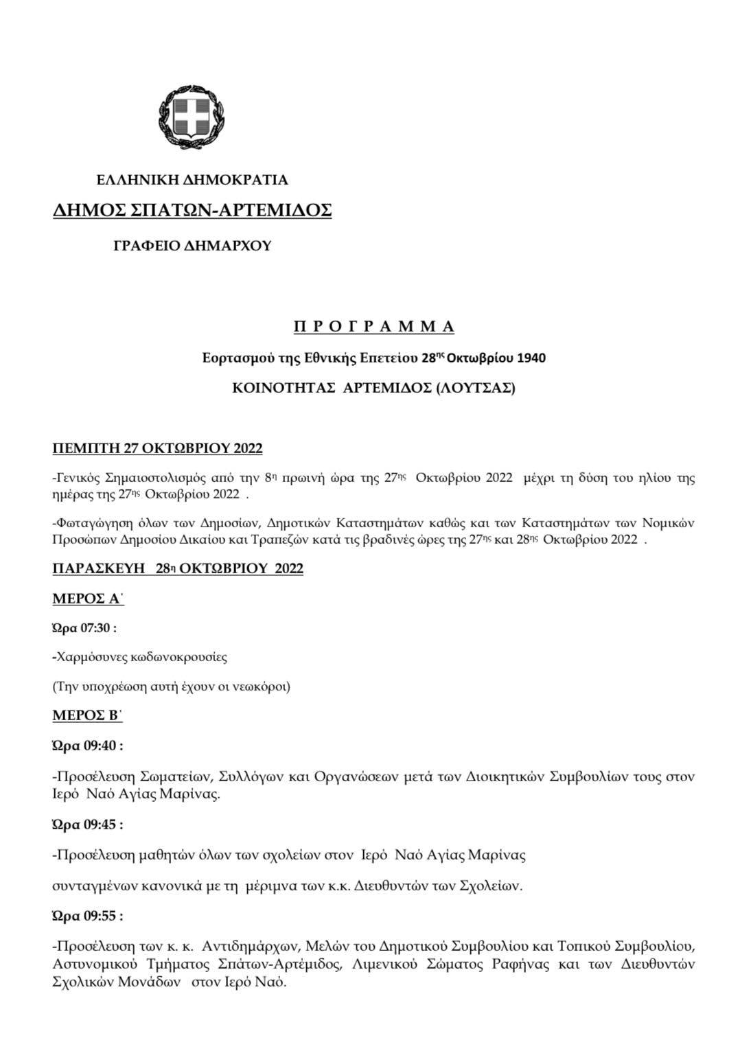 Λόγω της πεζοδρόμησης της Λεωφ. Αρτέμιδος παρακαλούνται τόσο οι κάτοικοι όσο και επισκέπτες να μην σταθμεύουν σε αυτήν από τις 17:00 έως και τις 24:00