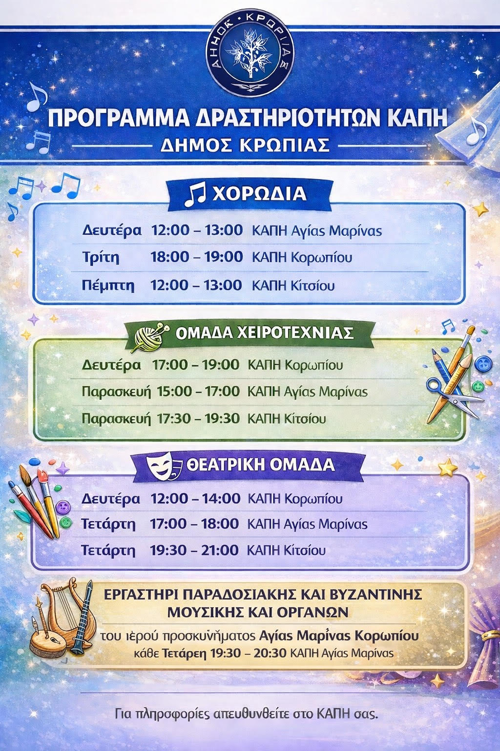 ΔΗΜΟΣ ΚΡΩΠΙΑΣ ΠΡΟΓΡΑΜΜΑ ΔΡΑΣΤΗΡΙΟΤΗΤΩΝ ΚΑΠΗ 2026