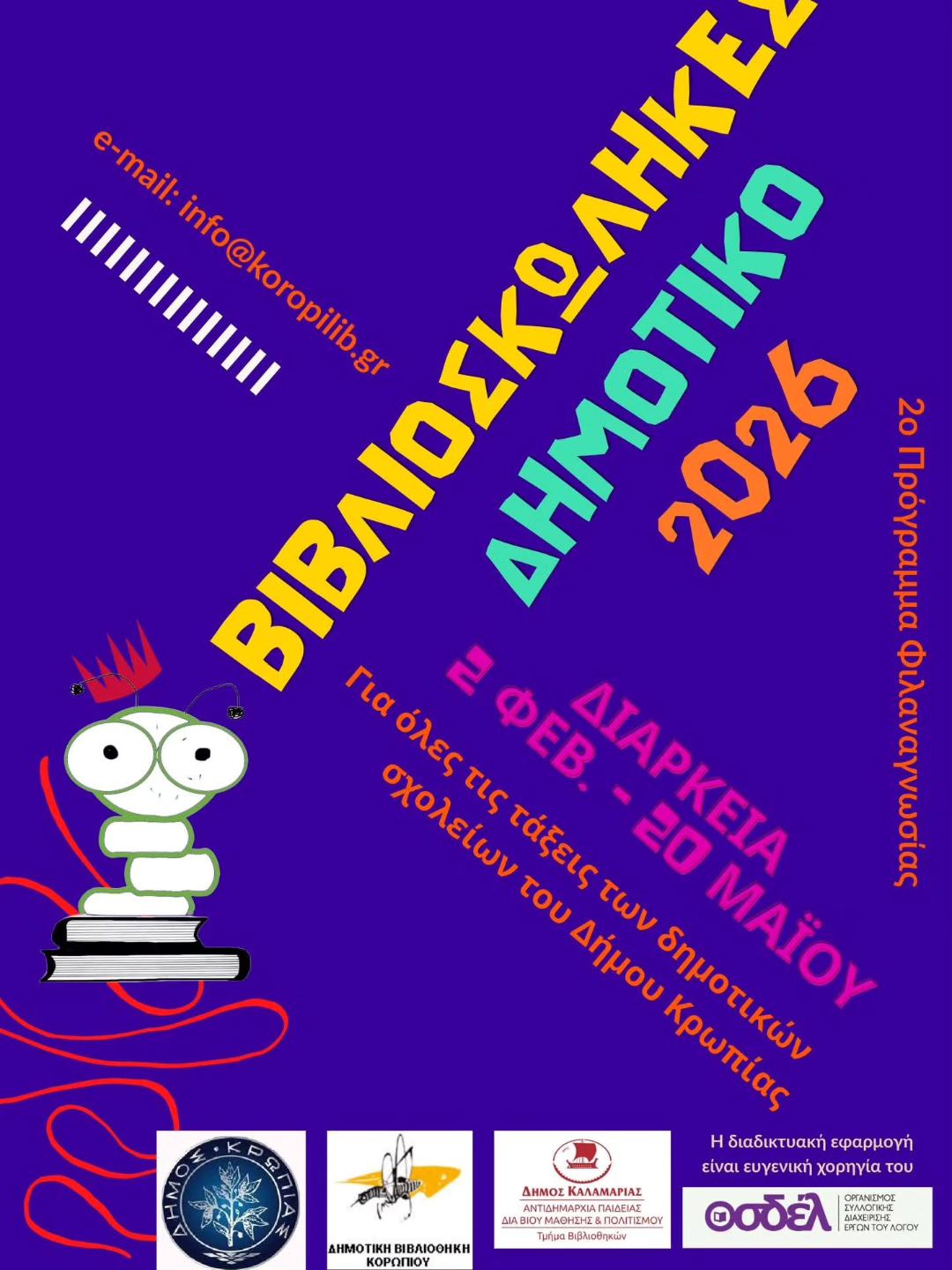 Βιβλιοσκώληκες 2026 : Για 2η χρονιά υλοποιείται το Πρόγραμμα Φιλαναγνωσίας για τα Δημοτικά Σχολεία Δήμου Κρωπίας
